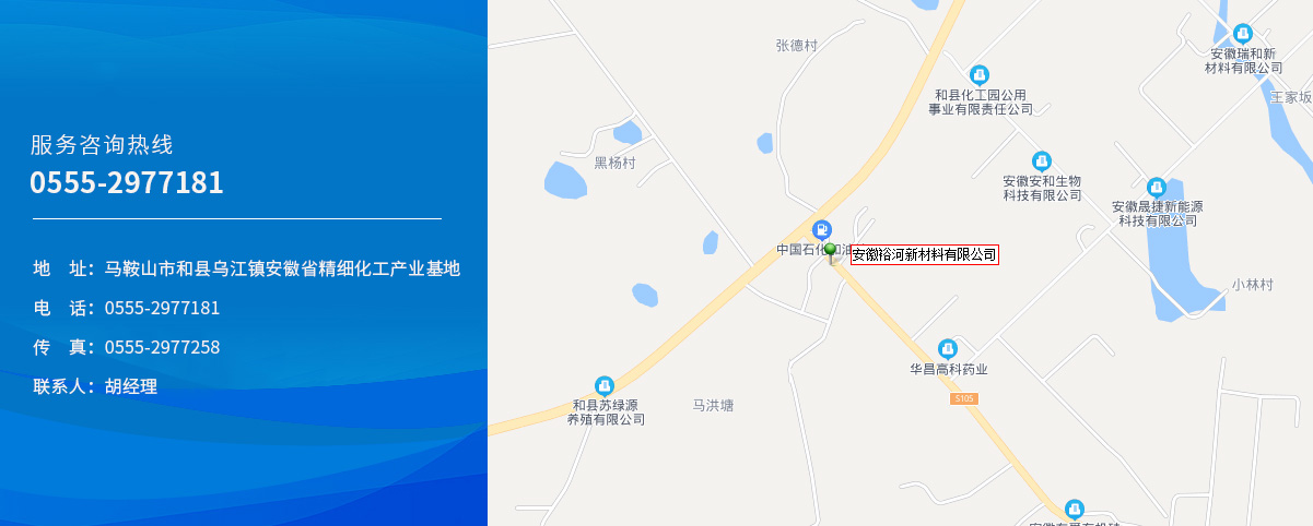 地址:安徽省馬鞍山市和縣烏江鎮(zhèn)安徽省精細(xì)化工產(chǎn)業(yè)基地 電話(huà):0555-2977181 手機(jī):187-0551-7353/胡經(jīng)理